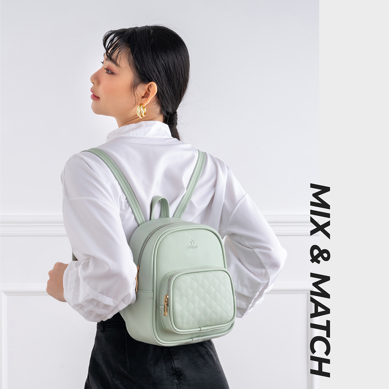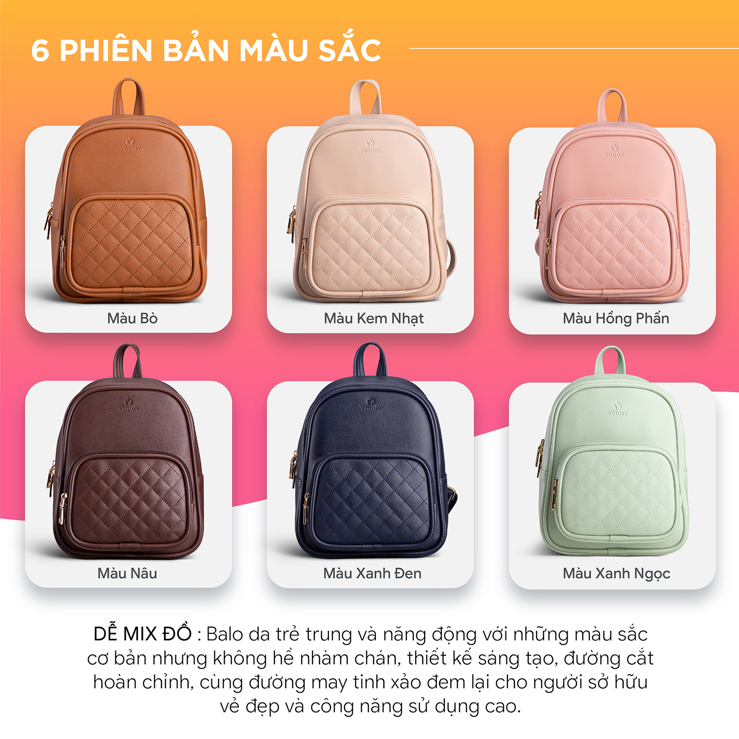 Mẫu balo da YUUMY YBA35 với họa tiết hình thoi lạ mắt sẽ giúp vẻ ngoài của bạn thêm cá tính và năng động. Khoang chứa bên trong rộng rãi đủ cho bạn đựng sổ tay, điện thoại, mỹ phẩ khi đi chơi, đi du lịch hay dạo phố.