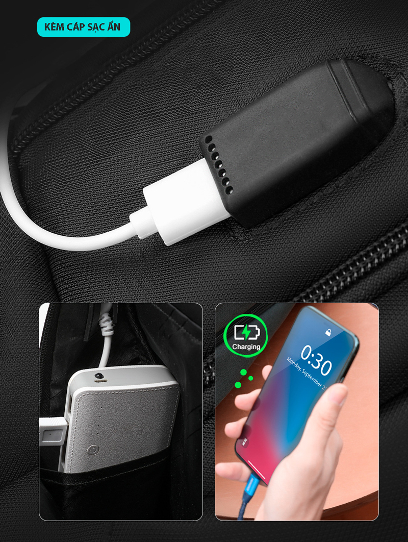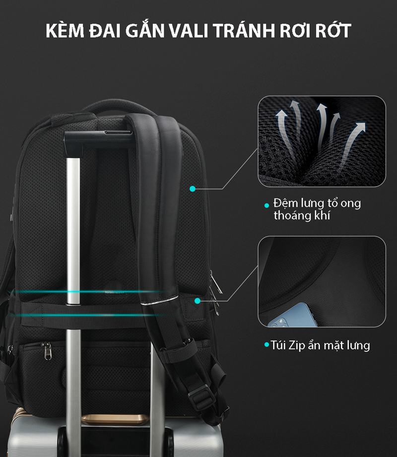 Khóa mật mã số bảo vệ TSA007 chuẩn Quốc tế an toàn hơn và tránh xâm nhập từ bên ngoài.*** Cách đổi mật khẩu mã khóa số TSA007:Ban đầu Balo đều có mã số 000, bạn có thể giữ nguyên hoặc đổi theo những con số bạn muốn. Cầm balo nằm nghiêng sao cho các con số hướng về phía bạn. Sau đó xoay các số thành số 000 rồi dùng ngón cái đặt vào nút đẩy phía phải kéo về, các đầu khóa kéo sẽ bật ra. Còn nếu muốn đổi thì: Bước 1: Sau khi các đầu khóa kéo bật ra, bạn dùng đầu bút bi hoặc cây tăm ấn vào lỗ tròn nhỏ kế bên khóa số sẽ có tiếng tic nhỏ sau đó xoay nút số mà các bạn muốn thay đổi.Bước 2: Đẩy nút đẩy lại lần nữa để xác nhận mật khẩu mới. Bạn đã đổi mật khẩu thành công.Lưu ý: Các nút số xoay còn mới nên hơi gì rít, bạn cứ xoay bình thường thôi nhé!Điểm nổi bật của balo là cáp sạc ẩn, bên hông trái có một cổng USB giúp bạn có thể dể dàng cắm dây sạc điện thoại vào. Tuy nhiên nó chỉ là một cổng USB nối dài, để sạc được thì bạn cần phải có cục sạc dự phòng ở bên trong. Cũng cần lưu ý là bạn cần sử dụng loại sạc dự phòng mà cắm USB vào là tự động sạc, chứ loại phải nhấn nút thì phải mở túi ra kích hoạt thì mới sử dụng được. Tính năng mới này vô cùng tiện lợi và an toàn cho người sử dụng.Quai đeo của Balo thiết kế đệm lưới thoáng khí, được may bằng kỹ thuật gấp mép dây viền, thiết kế ôm rất sát hai vai. Chức năng 2 trong 1 bởi quai cầm dày dặn êm mịn rất chắc chắn được may phía trên quai đeo dùng để xách gọn gàng.Balo Macbook 15.6 inch có cấu trúc chắn chắn, an toàn cho ngưới dùng, tỉ mỉ từng đường kim mũi chỉ, khóa kéo có đầu dài giúp cầm kéo một cách nhẹ nhàng không bị gì rít, quai đeo có thể điều chỉnh nới dài – thu ngắn theo chiều cao người dùng vô cùng linh hoạt. Đặc biệt, mặt lưng balo là đệm lưới tổ ong cao cấp giúp thoát nhiệt nên sẽ không bị ướt lưng áo và còn chống gù lưng, an tâm sử dụng mỗi ngày. Không những thế, đai mỏng thiết kế ngang ở mặt lưng balo dùng cố định quai đeo khi không cần dùng tới và dùng để gắn vào Vali tránh rơi rớt hay bị giật khi di chuyển.