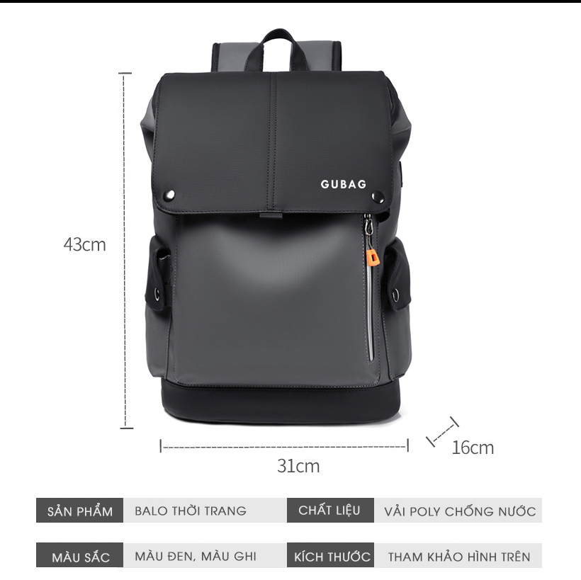 - Trọng lượng balo Gubag: 800 gram