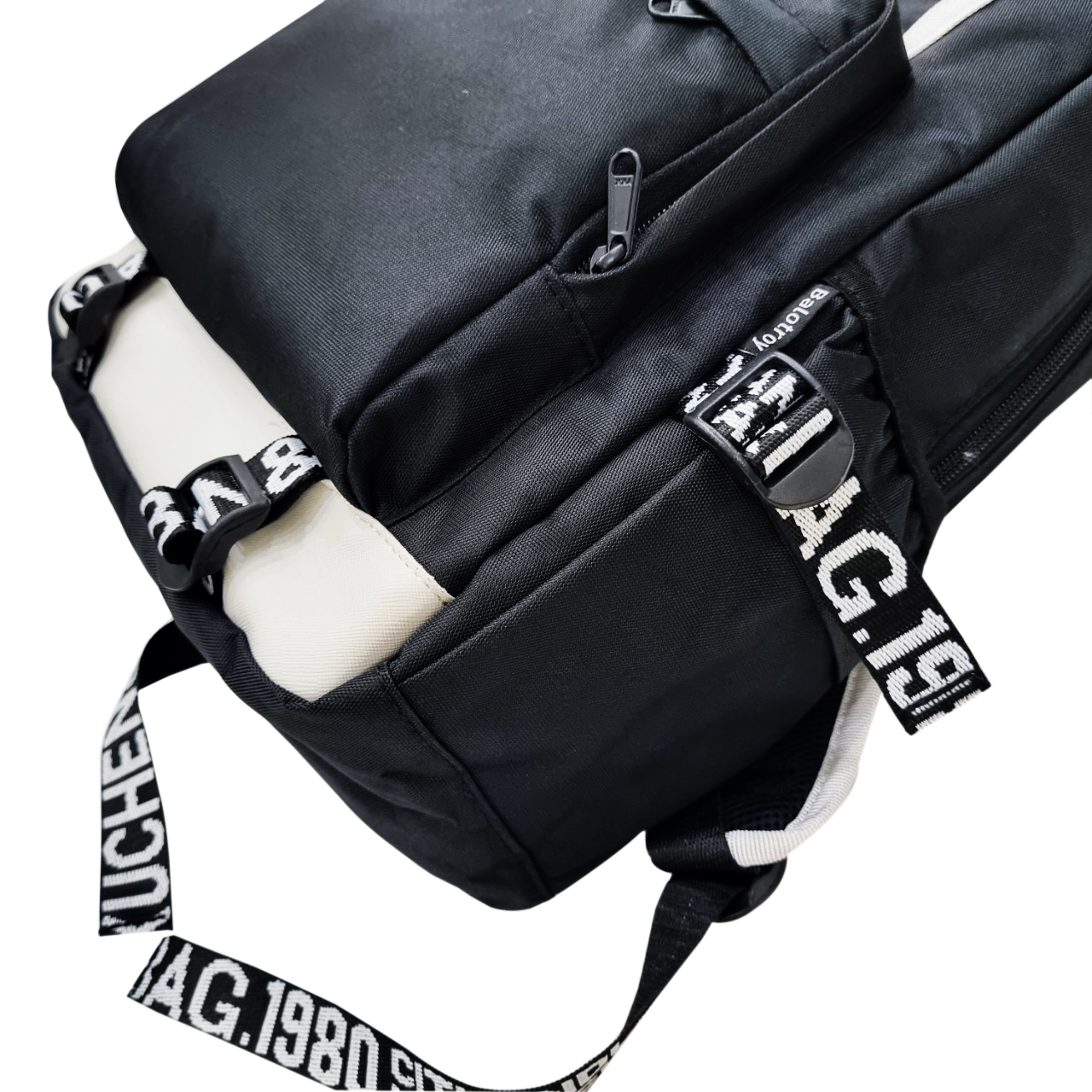 ️ Thiết kế tinh tế, màu sắc đen dễ phối đồ: Balo TROY được thiết kế tinh tế nổi bật với đường viền trắng kết hợp với dây đai có họa tiết chữ cá tính, vừa thời trang vừa gọn nhẹ lại vừa năng động thích hợp cho các bạn trẻ, học sinh, sinh viên nhưng cũng rất thanh lịch, trang nhã cho các anh chị công sở đi làm, hoặc đi công tác.
