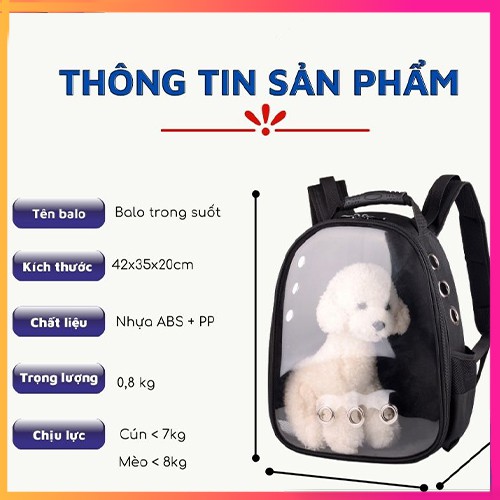 Sản phẩm: BALO THÚ CƯNG 10KG CHÓ MÈO GIÁ RẺ ĐỊU PHI HÀNG GIA TRONG SUỐT, BALO VẬN CHUYỂN CHÓ MÈO TRONG SUỐT THỜI TRANG (PET LY LY)