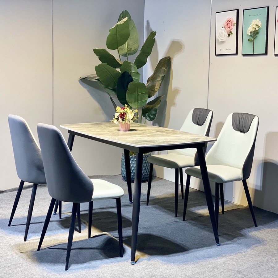Bàn ăn mặt đá ceramic bóng, chân sắt sơn tĩnh điện cao cấp