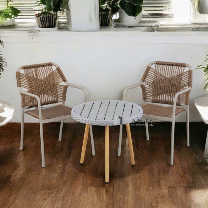 Tay ghế gắn liền với thân ghế tạo sự đồng nhất, đảm bảo độ chắc chắn, chịu lực tốt. Form ghế vuông vắn vững vàng. Sản phẩm chống chịu được trước các yếu tố tác động của thiên nhiên thích hợp sử dụng ban công, sân vườn, sân thượng,...