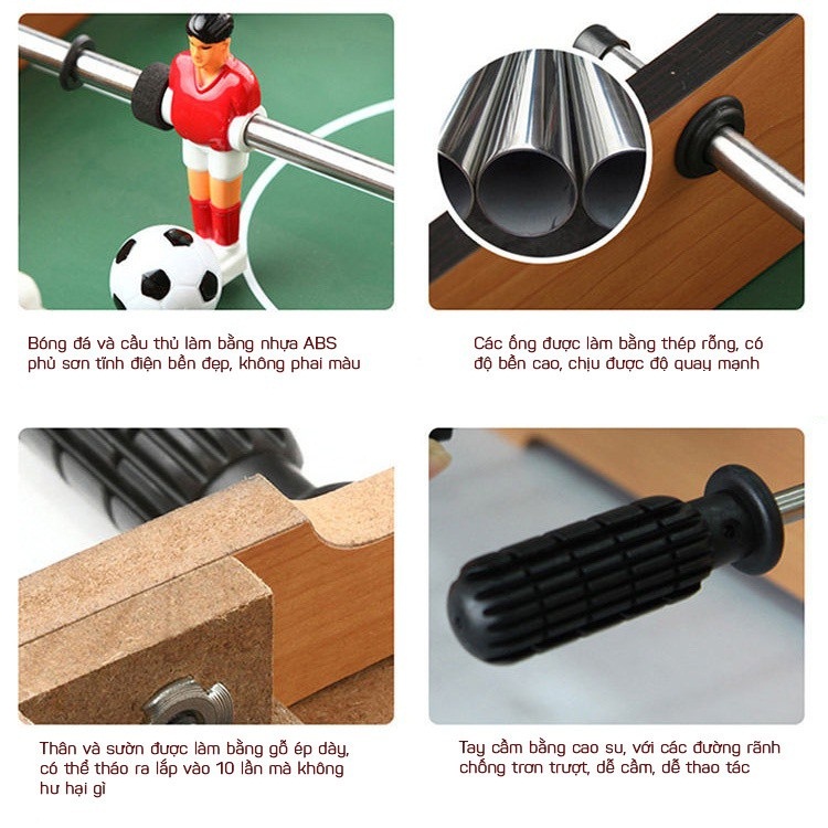 - 18 Cầu thủ và 2 bóng làm từ chất liệu ABS bền đẹp.