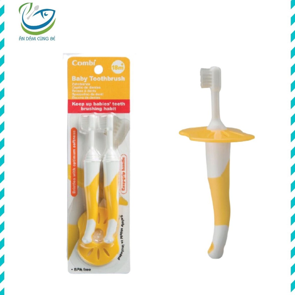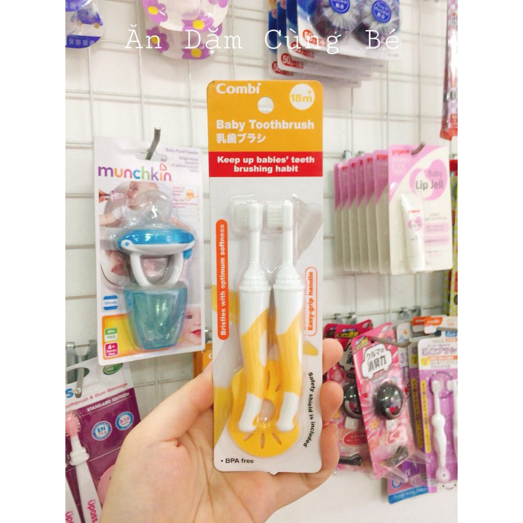 Set bàn chải Combi mới về này dùng được cho bé từ 18 tháng tuổi trở lên cm nhé. Chất liệu Chất liệu nhựa PP, nylon an toàn. Lông bàn chải mềm, không hề cứng hơn nữa set bàn chải có kèm tấm chắn giúp con khi tự đánh răng tránh được việc đưa sâu vào họng.