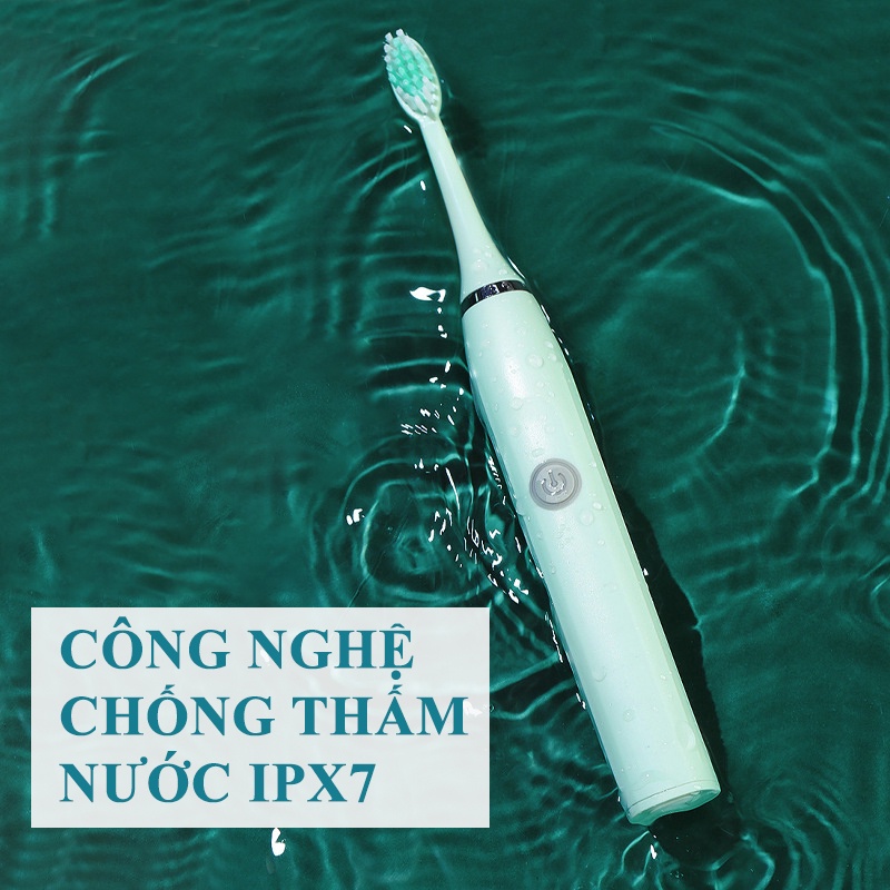 🌺MÔ TẢ SẢN PHẨM - SẢN PHẨM GỒM CÓ: 1 THÂN BÀN CHẢI ĐIỆN + 2 ĐẦU BÀN CHẢI + SÁCH HƯỚNG DẪN SỬ DỤNG - Chống nước chuẩn công nghệ IP-X7 - Tần số rung lớn 19800 lần/phút giúp bạn có hàm răng trắng sáng và khỏe mạnh - Lông bàn chải điện làm từ sợi Dupont: được Nha khoa khuyên dùng - Chế độ thời gian thông minh. Thời gian chải răng 2 phút, sau 30s tự ngắt 3s để báo thay đổi vùng đánh răng.
