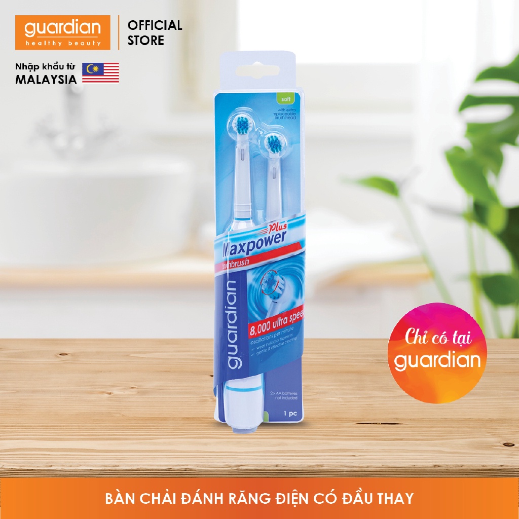 Công dụng: ● Bàn chải đánh răng Guardian Plus Maxpower với tốc độ quay lên đến 8000 dao động/ phút kết hợp lông bàn chải mềm, làm sạch sâu kẽ răng và giảm tổn thương nướu, giảm mảng bám và cao răng, hạn chế vi khuẩn gây mùi. ● Bàn chải đánh răng có cơ chế làm sạch mảng bám nhờ chuyển động xoay tròn kết hợp rung của đầu bàn chải, được thiết kế với chế độ cảm biến áp suất thông minh, giúp điều chỉnh tự động khi áp lực lên răng quá mạnh.