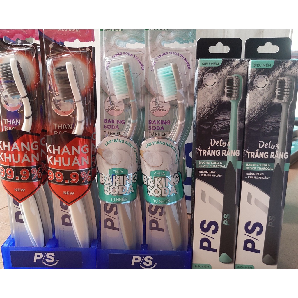 Combo 2 Bàn Chải Đánh Răng P/S Than Bạc là dòng sản phẩm cao cấp thế hệ mới của P/S hội tụ đầy đủ các tính năng vượt trội của một bàn chải với thiết kế cổ 3 ngấn độc đáo, mặt chải lưỡi bằng nhựa dẻo mềm mại và đặc biệt lông bàn chải được bổ sung than hoạt tính và ion Bạc+ giúp kháng khuẩn đến 99,9%.