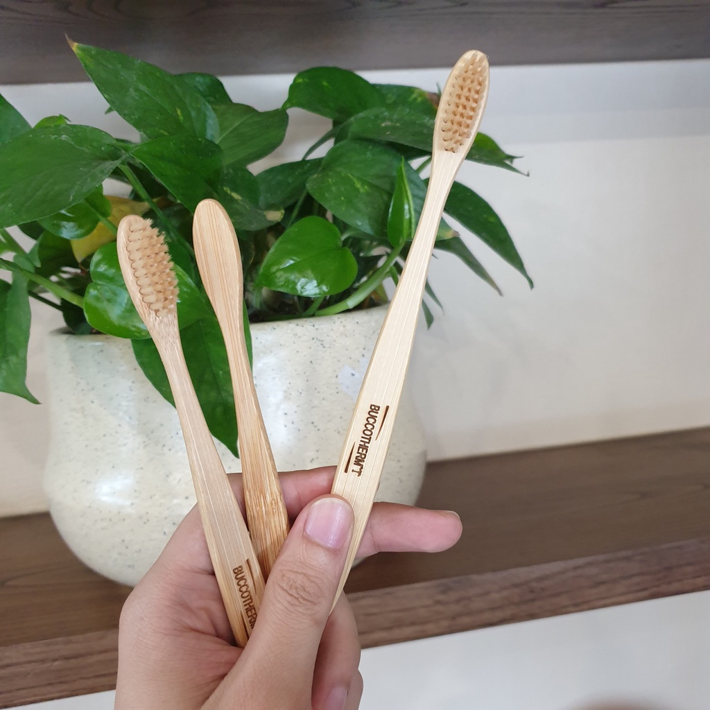 Bàn chải đánh răng tre khắc chữ Buccotherm sợi lông chải siêu mềm sạch từng kẽ răng