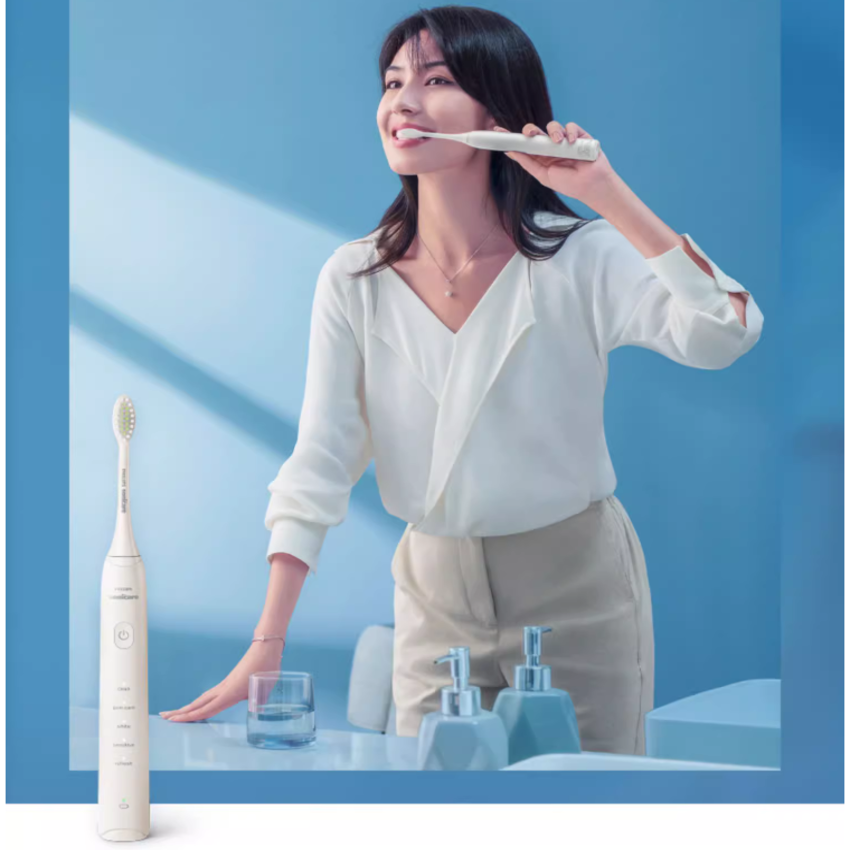- Đầu chải được thiết kế viền lông độc đáo, kết hợp với tốc độ và cường độ vượt trội, bàn chải điện Sonicare giúp tối ưu hóa việc làm sạch và chăm sóc răng miệng