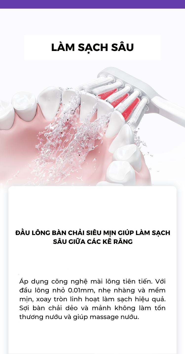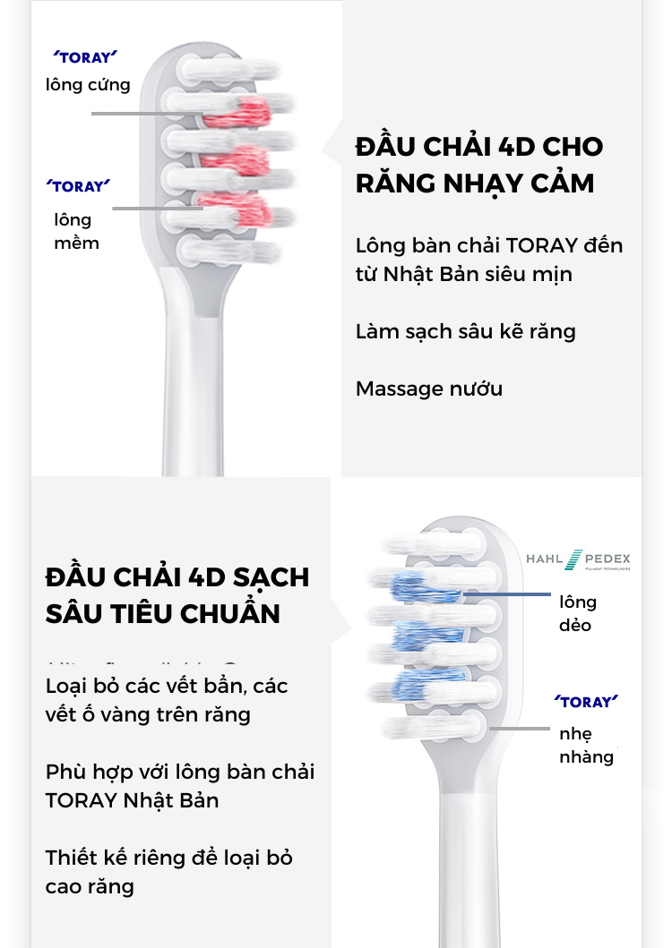4. Đầu bàn chải 4D co giãn, đàn hồi.