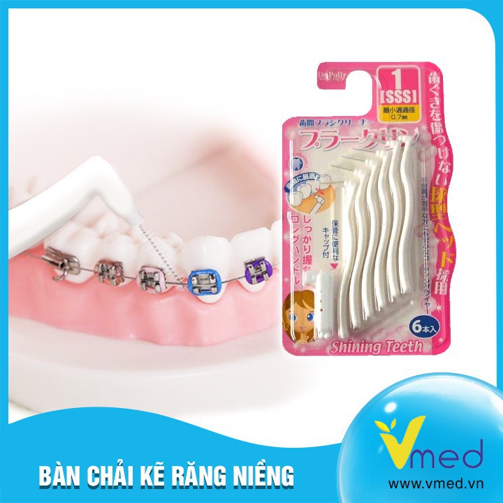 -Trong miệng mỗi người có rất nhiều vi khuẩn sống nhờ vào những mảnh thức ăn thừa bám vào răng sau mỗi bữa ăn. -Việc chải răng đúng cách và đều đặn hàng ngày chỉ giải quyết được 70% những thức ăn thừa cũng như những vết bẩn trên răng. -Và để làm sạch hết những vết bẩn cứng đầu này, bạn sẽ nghĩ ngay đến tăm xỉa răng, nhưng khi bạn dùng tăm xỉa răng sẽ rất dễ gây ra trầy, sây sát nướu. -Với sản phẩm bàn chải kẽ răng Shining Teeth - Nhật Bản, bạn sẽ không còn lo lắng về những vết bẩn trên răng và cũng không lo bị sây sát răng hay nướu nữa. -Sản phẩm này sẽ hỗ trợ cho bàn chải đánh răng, làm sạch thức ăn, mảng bám ở cổ răng, kẽ răng… - Bạn nên sử dụng mỗi ngày để lấy mảng bám ra khỏi bề mặt răng trước khi chúng có cơ hội hình thành vôi răng sẽ giúp bạn ngăn ngừa bệnh nha chu và hôi miệng. -Được thiết kế đặc biệt cho răng và nướu nhạy cảm, sản phẩm sẽ giúp bạn dễ dàng lấy đi các mảng bám trên khe răng - nơi mà bàn chải đánh răng thông thường không len tới được. -Tại sao phải dùng bàn chải kẽ răng? Bởi nếu không thì 1/3 của bề mặt răng không được chải sạch. Bàn chải răng chỉ chải sạch mặt ngoài, mặt trong răng và mặt nhai. -Còn bề mặt kẽ răng và đường viền lợi giữa các răng, nơi mà bàn chải răng không thể tiếp cận được -Sử dụng bàn chải kẽ răng bằng động tác khẽ đẩy bàn chải vào kẽ răng và rút ra, dùng bàn chải kẽ răng 1 ngày 1 lần vào buổi tối để phòng tránh viêm giúp ban chăm sóc răng miệng một cách tốt nhất.
