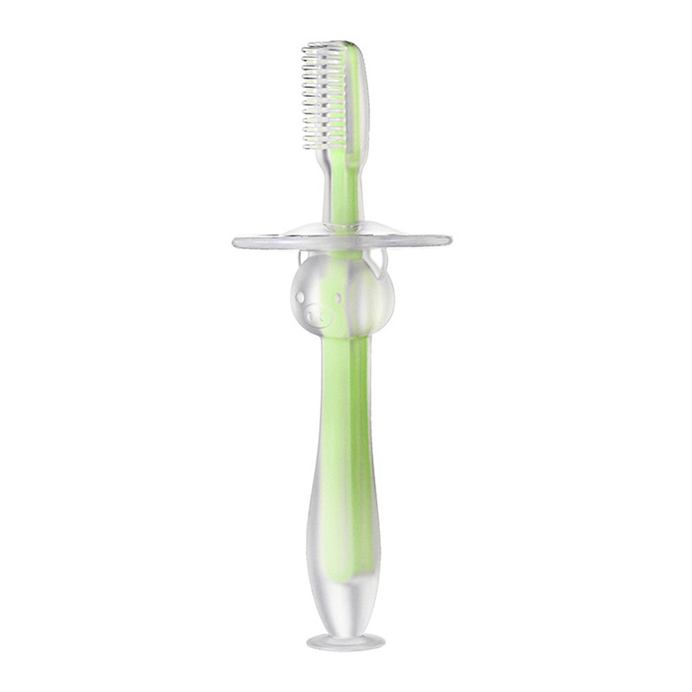 Bàn chải tập đánh răng an toàn silicon có đế bám dính Ưu điểm Thiết kế đặc biệt, một cây hai tác dụng, mặt trước đánh răng, mặt sau rơ lưỡi. Lông cọ sử dụng Silicon mềm mại thoải mái, không tổn thương nướu bé, tạo thuận lợi cho bé vui vẻ tập đánh răng. Sử dụng nguyên liệu thiên nhiên tươi mới, không có độc hại, an toàn. Miếng đệm an toàn, có thể tránh bàn chải đi sâu vào cổ họng gây tổn thương cho bé. Chịu nhiệt cao, có thể tiệt trùng nguyên cây. Chất liệu đặc biệt, chịu nhiệt -200c±1200c. Chú ý cách sử dụng: Đối với trẻ bắt đầu tập đánh răng, cha mẹ phải ở bên cạnh hướng dẫn cách đánh răng chính xác. Khi sử dụng phải điều chỉnh miếng đệm để tránh bản chải đi sâu vào cổ họng gây tổn thương cho bé, nếu thực tế không cần có thể gỡ bỏ. Để tránh nguy hiểm, không để trẻ em sử dụng sản phẩm khi không có người lớn bên cạnh. Phải thường xuyên kiểm tra sản phẩm, nếu phát hiện tình trạng biến dạng, bị nhảo hoặc hư hỏng, phải lập tứ Có nhiều màu, shop xin giao màu ngẫu nhiên
