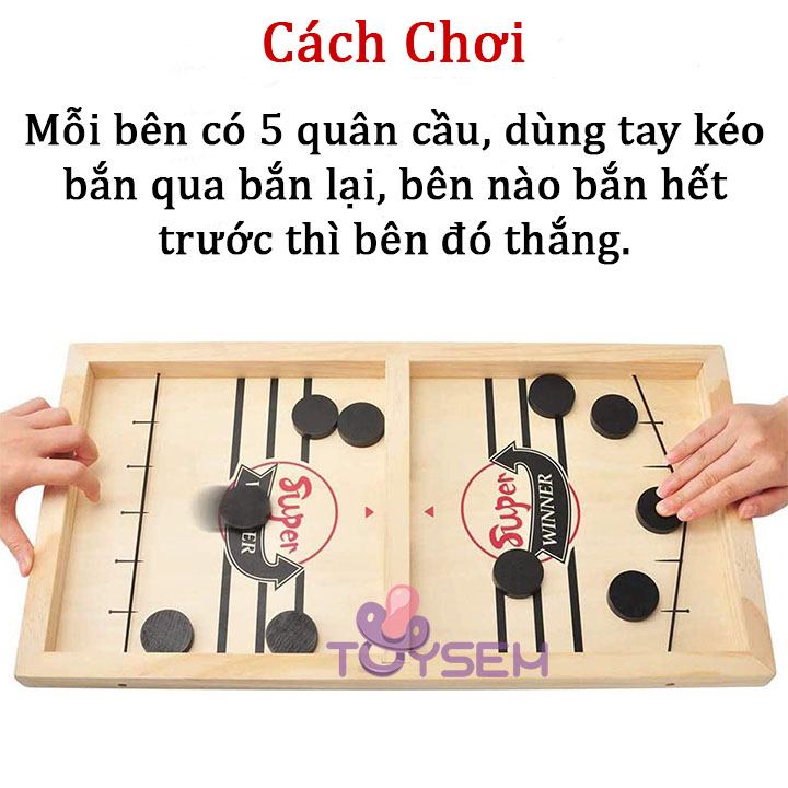 Thông Tin Chi Tiết Sản PhẩmChất liệu gỗ tự nhiên cao cấpBộ đồ chơi bằng gỗ dành cho 2 người, phù hợp cho trẻ từ 3 tuổi trở lênKích thước size lớn 55.5*29*2.5 cmCách chơi đơn giản, 2 bên bắn nhau,...