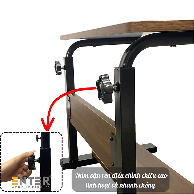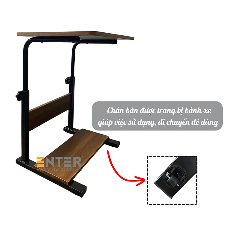 Bàn di động Enter BG105 với thiết kế đơn giản cùng tone màu sắc đẹp mắt. Mặt bàn rộng rãi lên đến 60x40cm mang lại không gian làm việc, học tập, giải trí,... thoải mái và tiện nghi. Mặt bàn ngang đủ rộng cho phép đặt laptop, sách vở, hay các đồ dùng cần thiết khác khi sử dụng mà không gặp bất kỳ hạn chế nào. Ngoài ra, bàn còn có thế điều chỉnh chiều cao tối thiểu từ 50cm và tối đa đến 84cm hoàn toàn thích hợp với nhiều không gian và mục đích sử dụng như làm bàn học, bàn ăn, bàn làm việc...