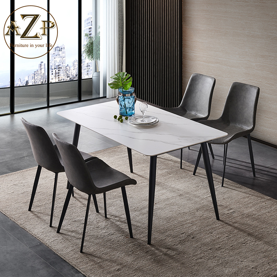 Bàn & Ghế Ăn Mặt Đá Chân Thép Phong Cách Đương Đại Xu Hướng Hiện Nay / Kích Thước 1.2m - 1.4m - 1.6m & 1.8m