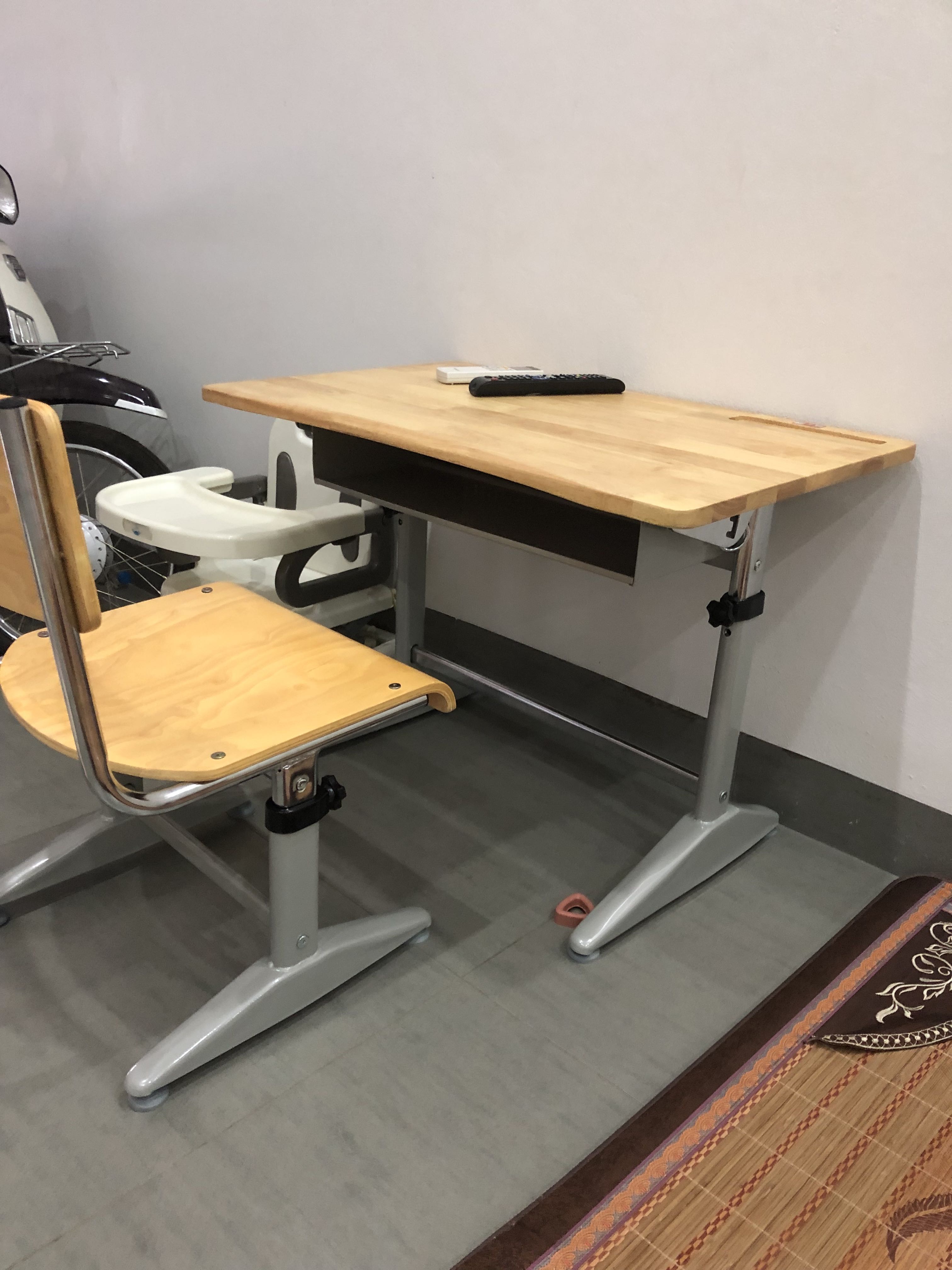 + Chân bàn và chân ghế đều có bộ phận điều chỉnh độ cao để phù hợp với từng người ngồi.