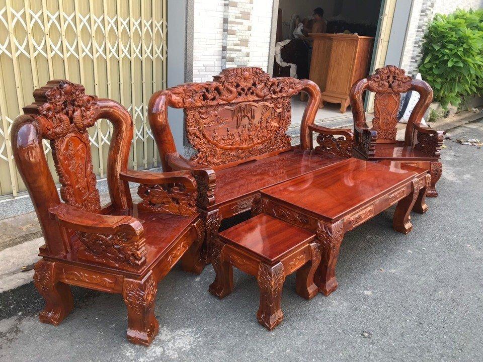 Bàn ghế phòng khách bằng gỗ tự nhiên được thiết kế với phong cách cổ điển với cách chi tiết chạm khắc cầu kỳ, tinh tế, các đường cong mềm mại làm tôn lên vẻ trang trọng cho khu phòng khách. Sản phẩm có tạo hình đẹp, kết cấu vững chắc phù hợp làm nội thất gia đình cho phòng khách rộng rãi.