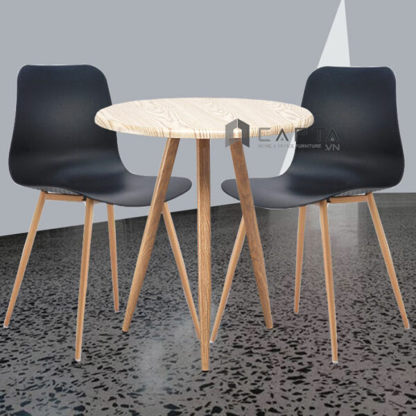 Mặt bàn tròn 60cm, phù hợp bố trí 2 3 ghế ngồi. Chất liệu mặt gỗ mdf Melamin vân gỗ giúp bàn hạn chế bám bụi bám bẩn và không tốn nhiều công sức để vệ sinh. Vân gỗ đẹp tự nhiên, mang lại sự hài hòa cho không gian tiếp khách.