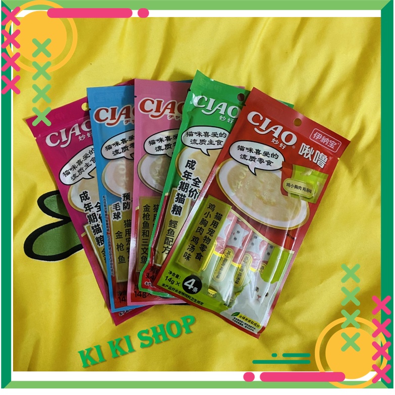 Giới thiệu [BÁN HÀNG LẤY TƯƠNG TÁC] pate súp thưởng Ciao churu cho Mèo gói 4 Thanh Các Vị