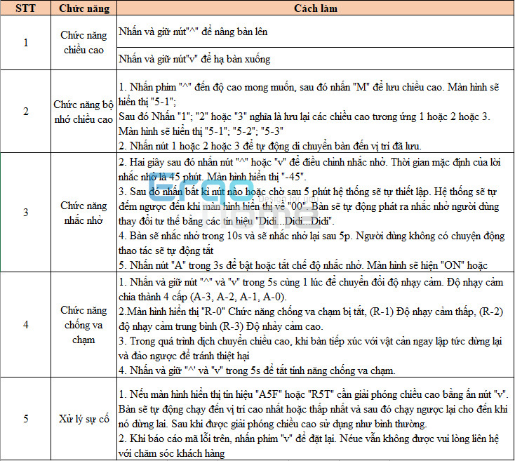 Có ghi nhớ 4 vị trí, nếu gặp vật cản bàn sẽ ngưng lại và tự động quay về vị trí ngược lại 2cm.