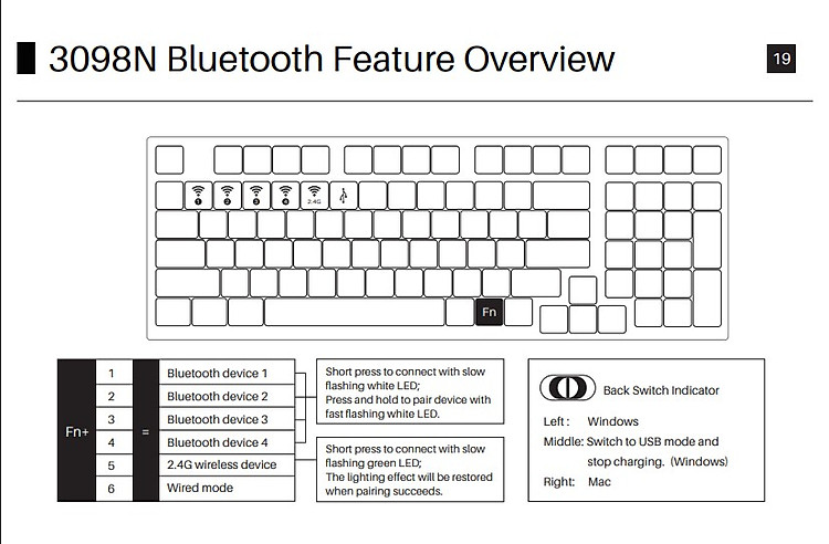 Kết nối | USB Type C, có thể tháo rời / Bluetooth 5.0 (tối đa 3 thiết bị) / Wireless 2.4Ghz (1 trong 3) |