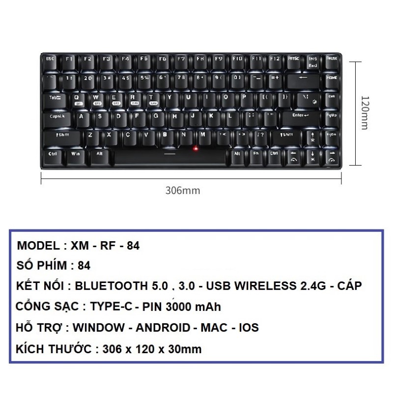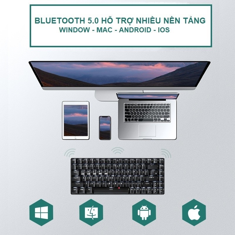- Bàn Phím Cơ không dây mini Đa kết nối RF84 Gaming cho máy tính