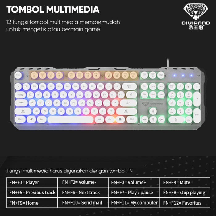 BÀN PHÍM GAME THỦ PHÍM TRÒN DIVIPARD GK-40 PUNK METAL LED RAINBOW