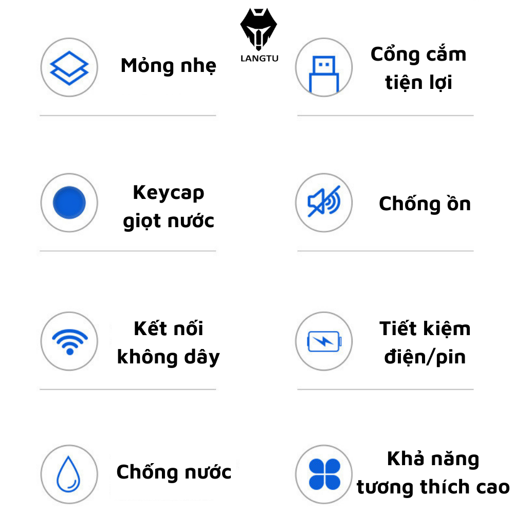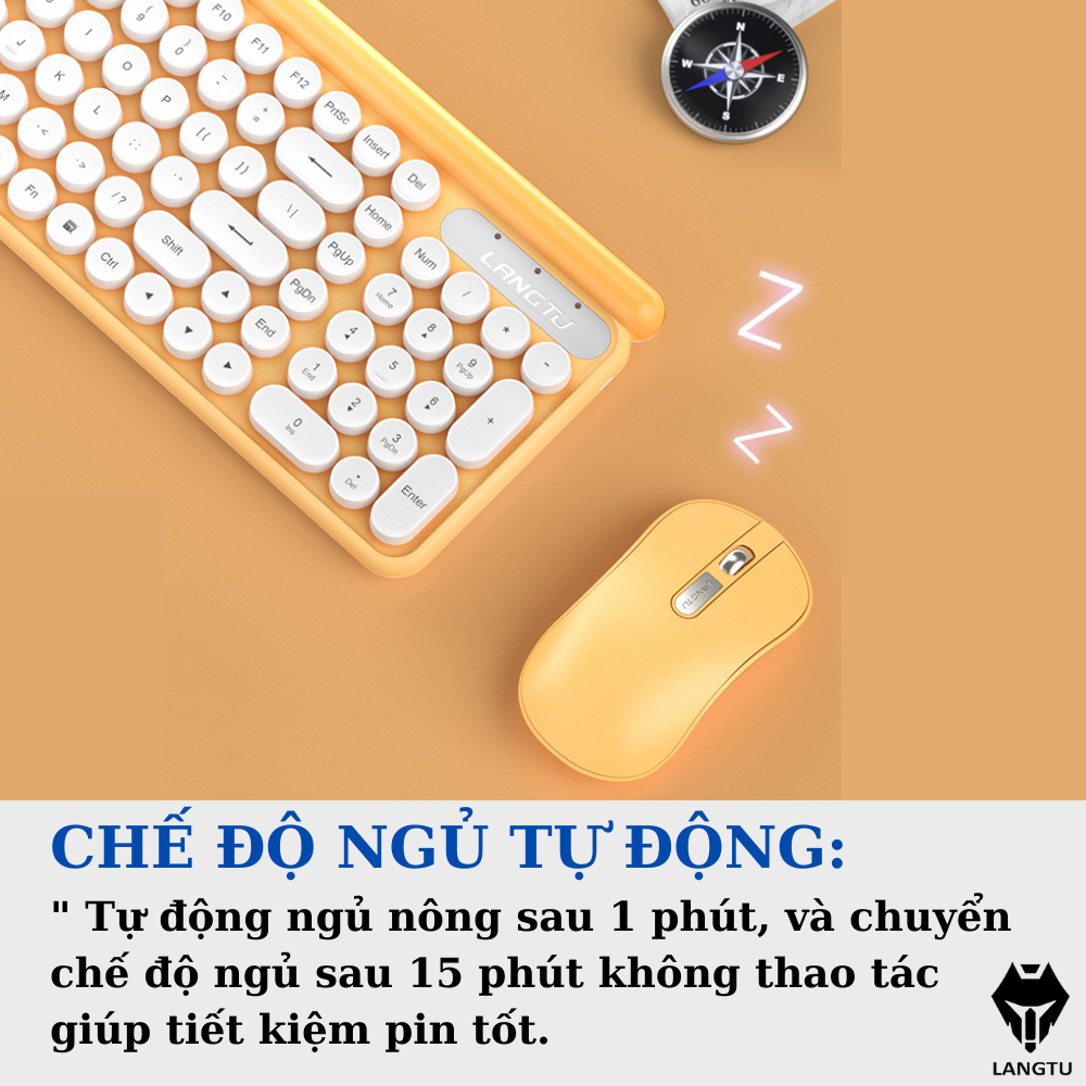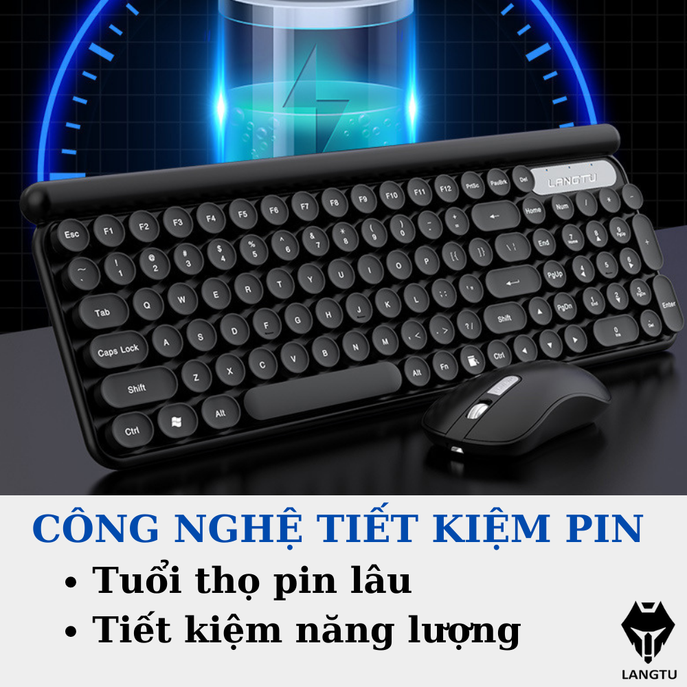 - Bàn phím giả cơ LANGTU nổi bật với thiết kế nhỏ gọn, mỏng nhẹ tiện lợi và khả năng tiết kiệm năng lượng/pin vượt trội. Sản phẩm bàn phím và chuột có chế độ tự động ngủ nông sau 1 phút, ngủ sau 15 phút không thao tác.