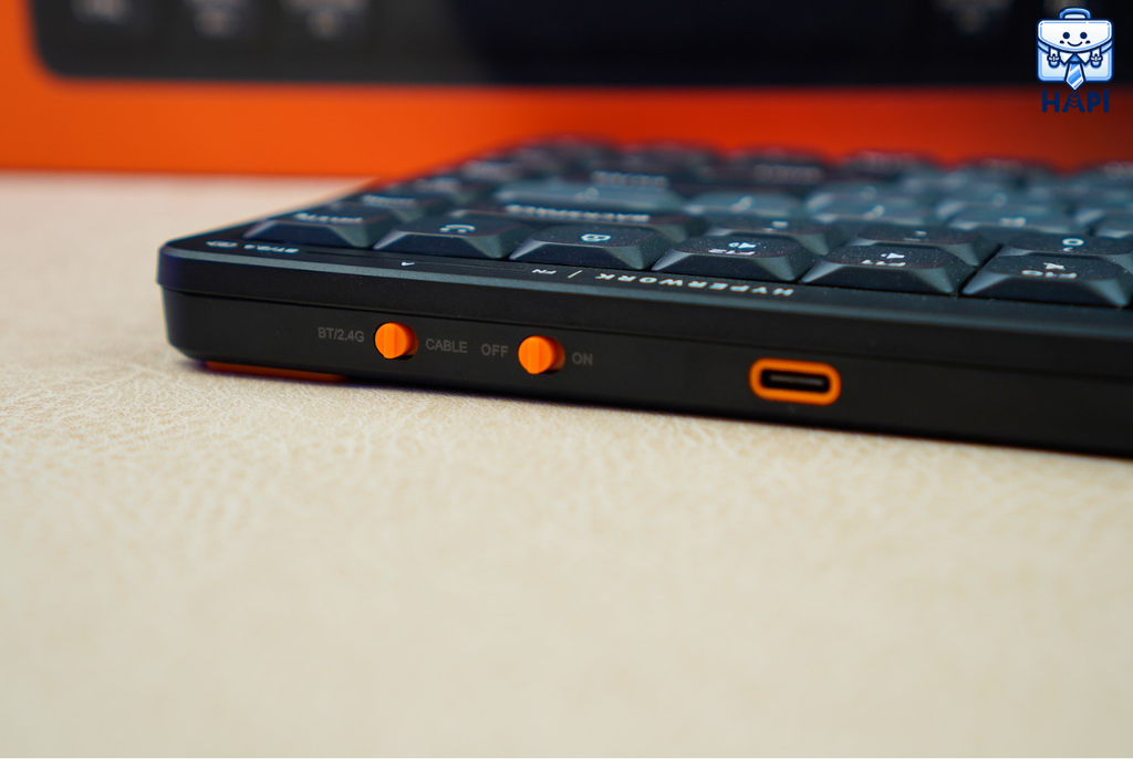 Thao tác chuyển đổi giữa các chế độ kết nối được thực hiện bằng cần gạt BT/2.4G và Cable. Sử dụng tổ hợp phím để chuyển giữa các thiêt bị không dây
