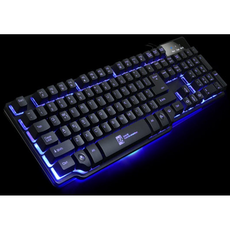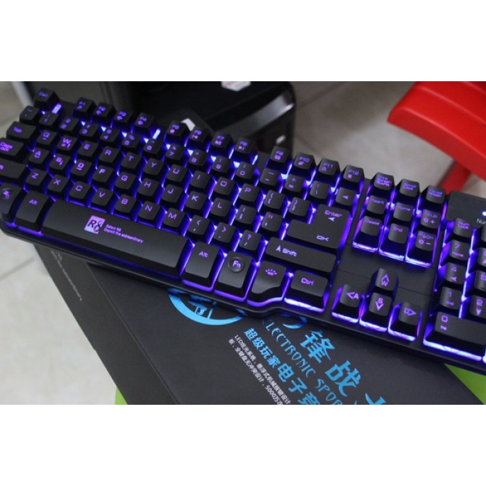Bàn phím LED chuyên game giả cơ với thiết kế tựa như 1 bàn phím cơ với đường nét và kiểu dáng rất phá cách, hệ thống đèn led dưới nền cực kỳ ấn tượng với 3 gam màu đèn xanh dương, đỏ, tím.