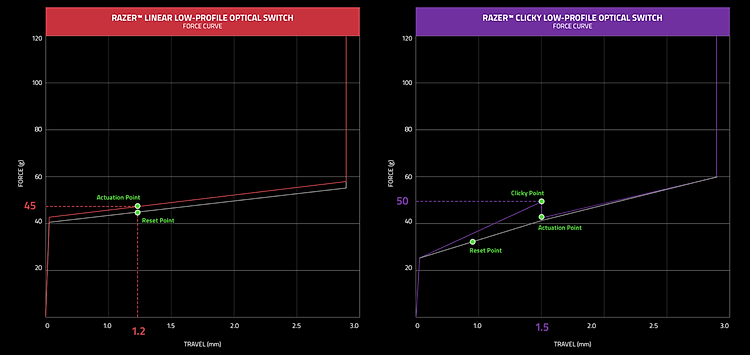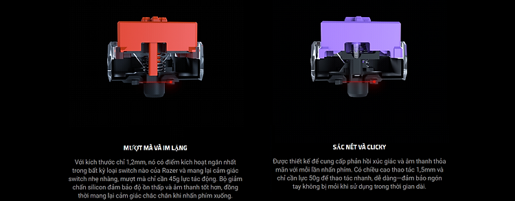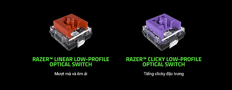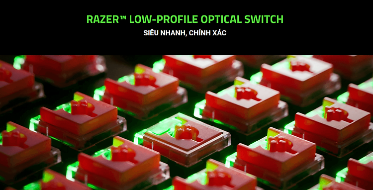 Được trang bị cùng khả năng phản hồi cực nhanh vốn là đặc điểm nổi bật của tất cả các bàn phím quang học của Razer, thực hiện các thao tác nhấn phím nhanh hơn với loại switch hoàn toàn mới có chiều cao tác động ngắn hơn để giảm hành trình phím, được hỗ trợ bởi tuổi thọ 70 triệu lần nhấn phím cho hiệu suất lâu dài.