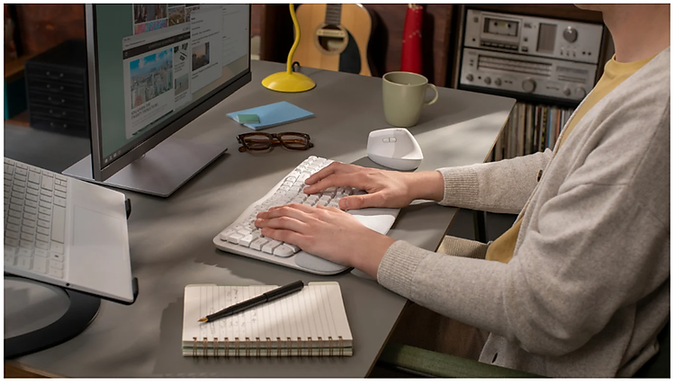 Kết nối bàn phím công thái học không dây bằng Bluetooth hoặc đầu thu Logi Bolt, và chuyển đổi giữa máy tính xách tay, máy tính bảng hoặc điện thoại bằng một cú chạm bằng các phím Easy-Switch.
