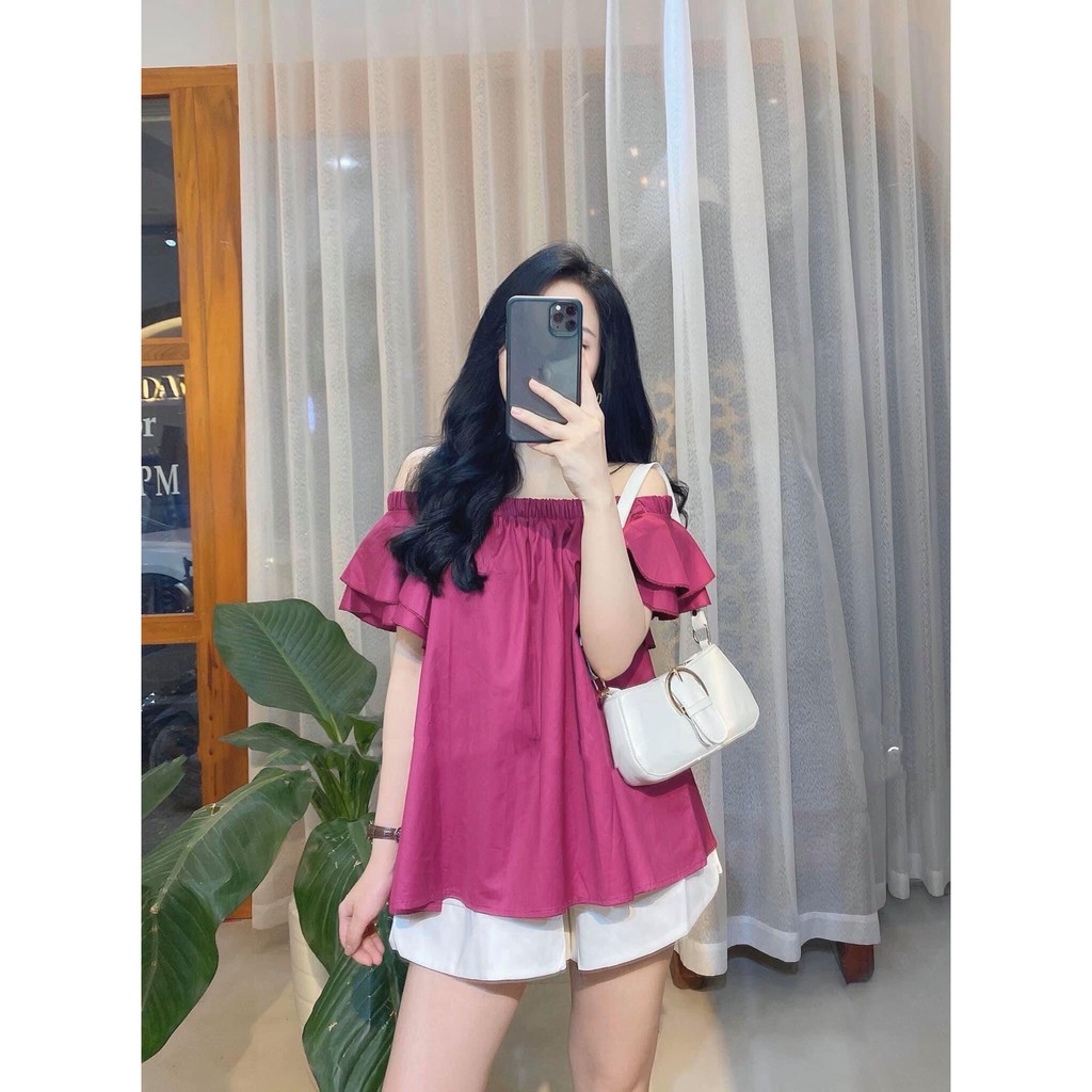 Giới thiệu [BÁN SET-BÁN ÁO-BÁN QUẦN] Áo Trễ Vai, Áo Kiểu Nữ Tay Bèo Cánh Tiên Mặc Phối, Quần Sooc, Chân Váy