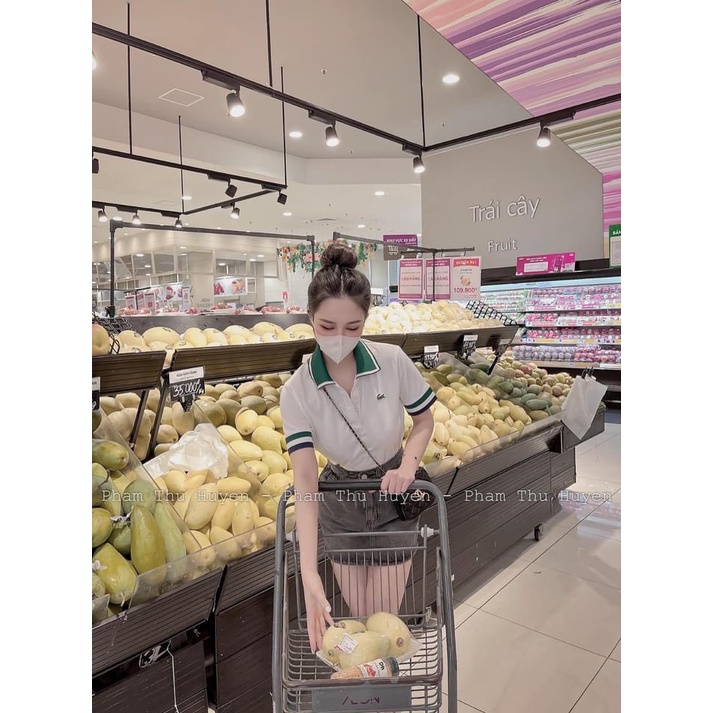 Giới thiệu BÁN SỈ ÁO POLO NỮ CỘC TAY TRẮNG CỔ XANH THÊU CÁ SẤU