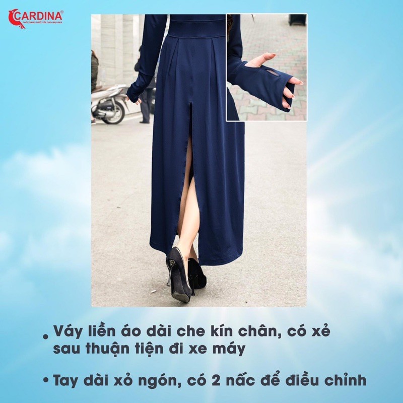👉 Thiết kế phần áo có 2 LỚP. Đai eo bản to thời trang tạo eo và tôn form dáng. Phần chân váy 1 LỚP trùm kín chân, đem lại hiệu quả chống nắng hoàn hảo.