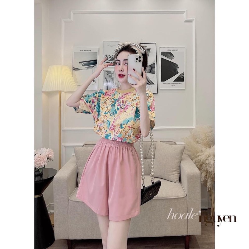🌷SET ÁO HOA LỤA MÀU VÀNG QUẦN SHORT 🌿