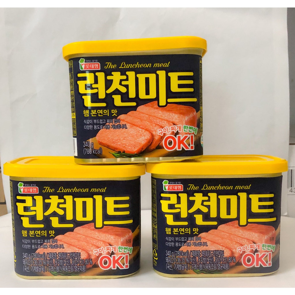 Giới thiệu [BÁN SỈ] Thịt Hộp Lotte Hàn Quốc 340g HSD 2024 The Luncheon Meat FREE SHIP Thịt Hộp Spam Nắp Vàng