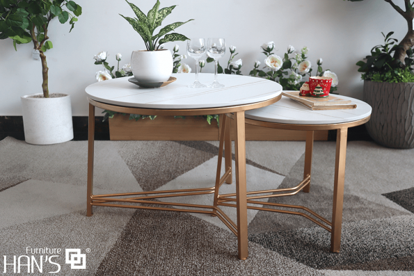 Bàn sofa mặt đá được xem là sản phẩm đón đầu xu hướng nội thất phòng khách.