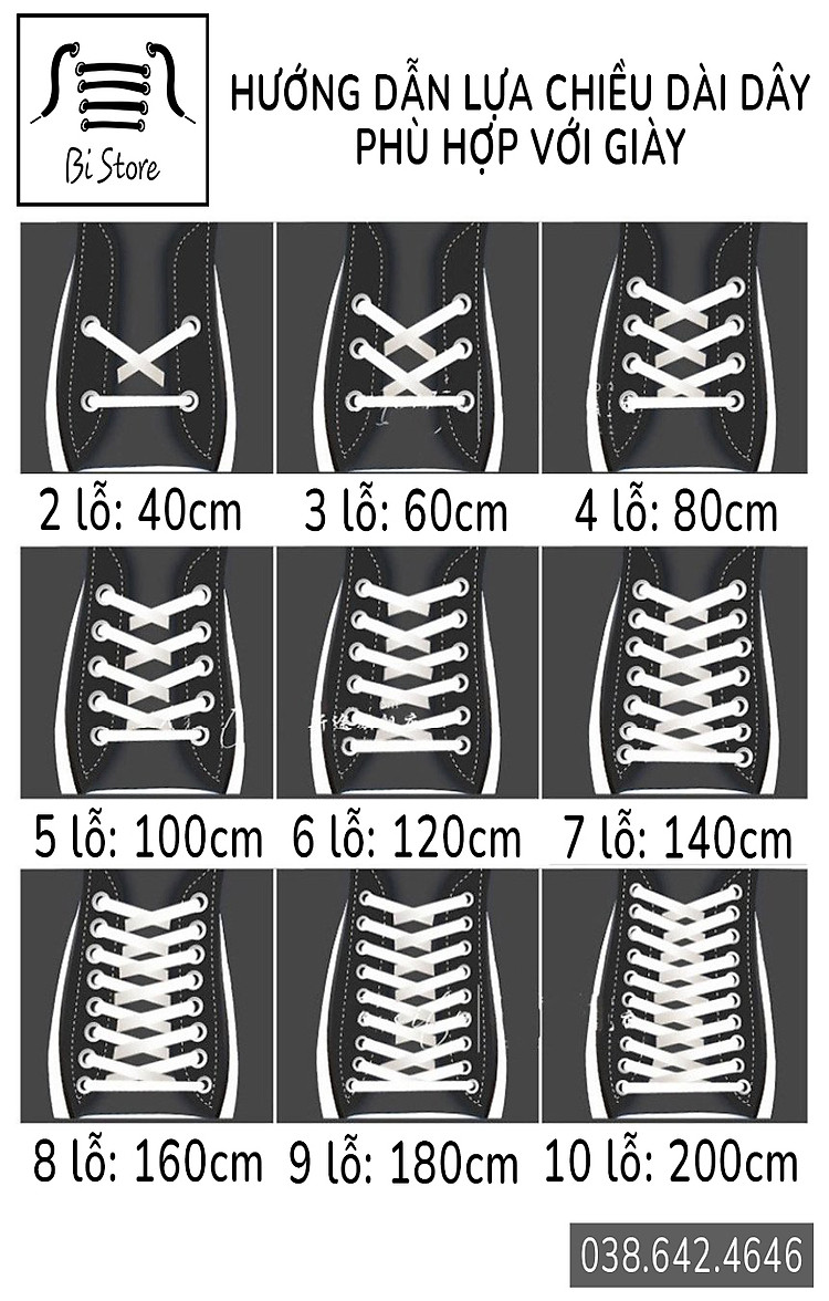 - Nếu bạn nhận hàng không đúng mẫu / màu như trong ảnh, hoàn tiền 100% bất kể lí do gì.- Không sản xuất, kinh doanh hàng kém chất lượng.- Giá bán đúng với chất lượng, khách hàng không bao giờ bị mua đắt.HƯỚNG DẪN LỰA CHIỀU DÀI CỦA DÂY PHÙ HỢP VỚI GIÀY: