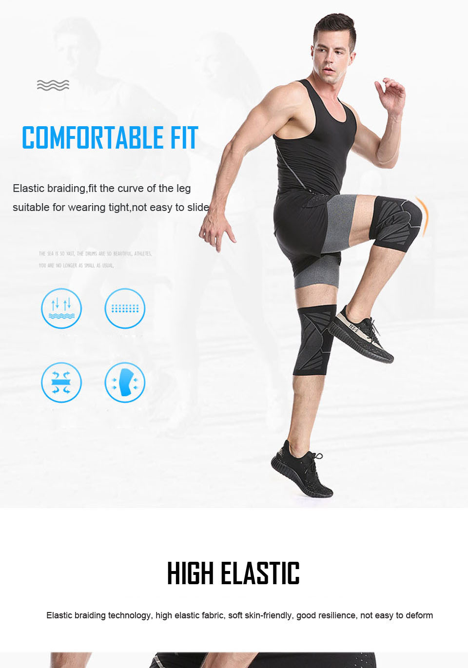 - Bó gối thể thao được làm từ vải đàn hồi co giãn 4 chiều. Bạn có thể thoải mái co, duỗi, gập mà không gặp bất kì trở ngại nào. Nó cũng thuận tiện với những người vừa tháo đinh nẹp sau chấn thương, bảo vệ gối mà không bị cứng nhắc, dễ dàng cử động.