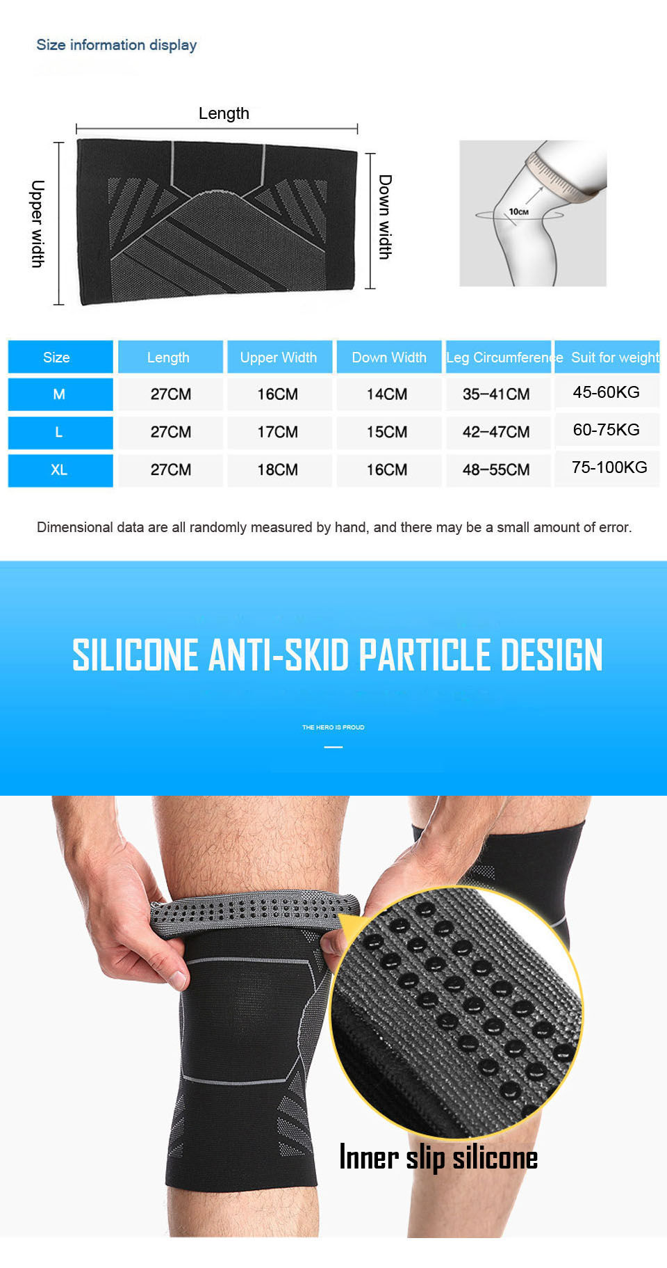 - Sản phẩm tinh tế khi bổ sung thêm những hạt silicone ở phía trong. Các hạt này có tác dụng cố định băng quấn gối khi tập luyện, hạn chế trơn tuột khi ra mồ hôi.