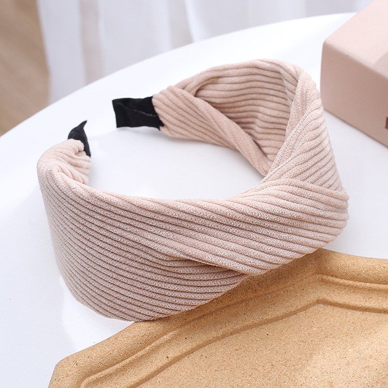 Băng đô cài tóc bảng bự màu trơn màu kem phong cách Hàn Quốc