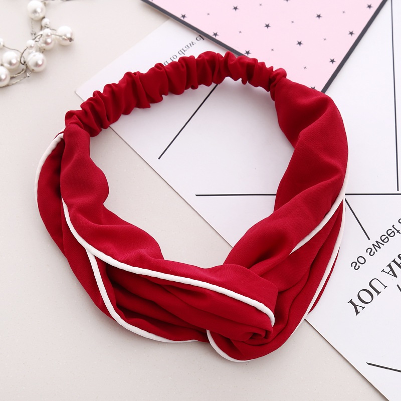 Băng đô màu trơn màu đỏ may mắn vải lụa mẫu mới phong cách Hàn Quốc