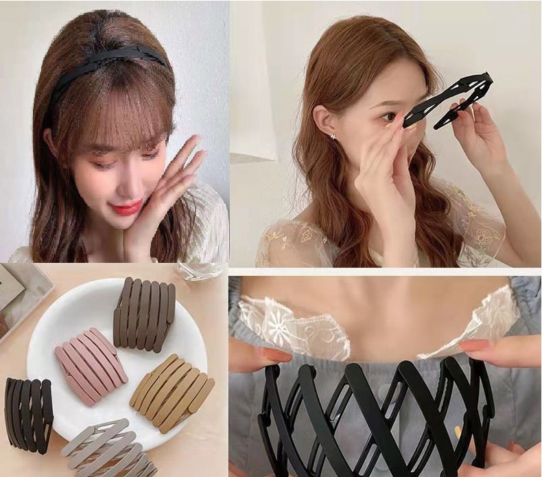 MÔ TẢ SẢN PHẨM Băng đô nhựa dẻo gấp gọn bỏ túi, bờm cài tóc co giãn tiện lợi