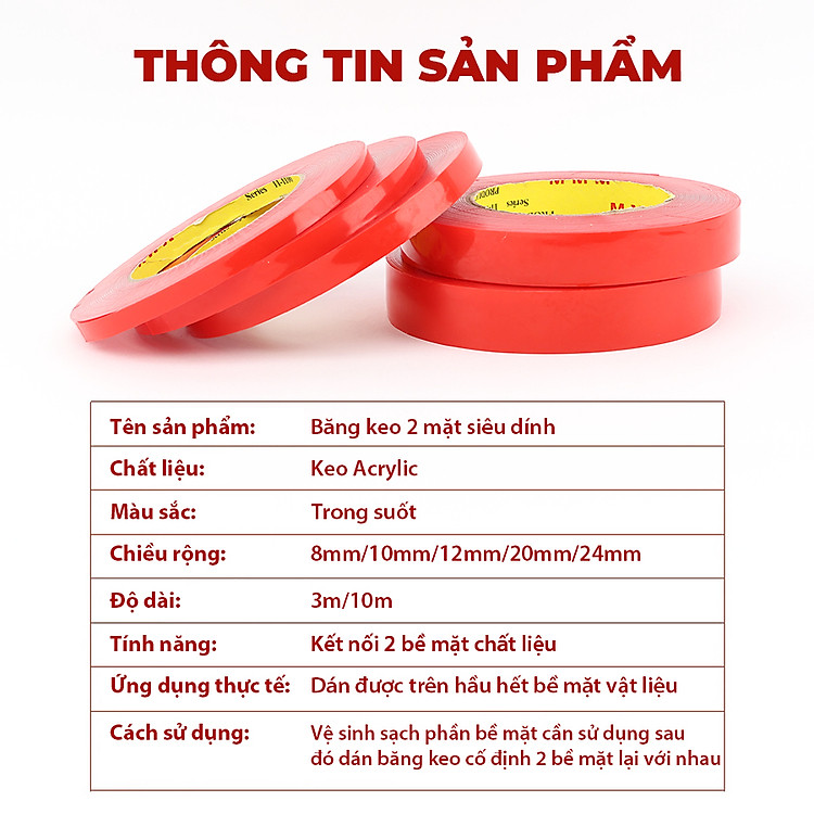 Băng Keo 2 Mặt Siêu Dính Trong Suốt Dán Mọi Vật Dụng CIND sử dụng hữu hiệu cho xe hơi và trong nhà có tác dụng cố định các đồ vật hoặc liên kết các bề mặt với sự kết dính cao, hỗ trợ việc thay thế các mối hàn cũ mà không để lại các dấu vết hư hỏng trên bề mặt sử dụng.
