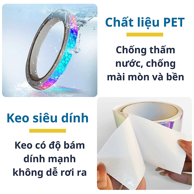Phản quang mạnh mẽ khi chiếu sáng trong đêm, giúp tăng khả năng nhận diện và đảm bảo an toàn khi di chuyển.