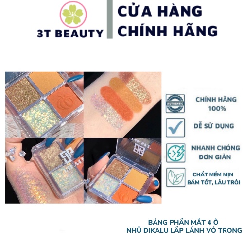 Giới thiệu Bảng phấn mắt 4 ô nhũ DIKALU lấp lánh vỏ trong