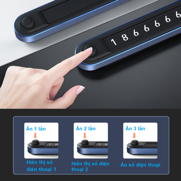 - Đặc biệt bảng số điên thoai tích hợp cho 2 số điên thoai khác nhau. Ấn 1 lần hiển thị số điên thoai 1, ấn 2 lần hiển thị số điên thoai 2 và khi bạn muốn che số điên thoai bạn chỉ cần ấn 3 lần. Bảng số điên thoai sẽ ẩn đi, rất tiện lợi và hữu ích