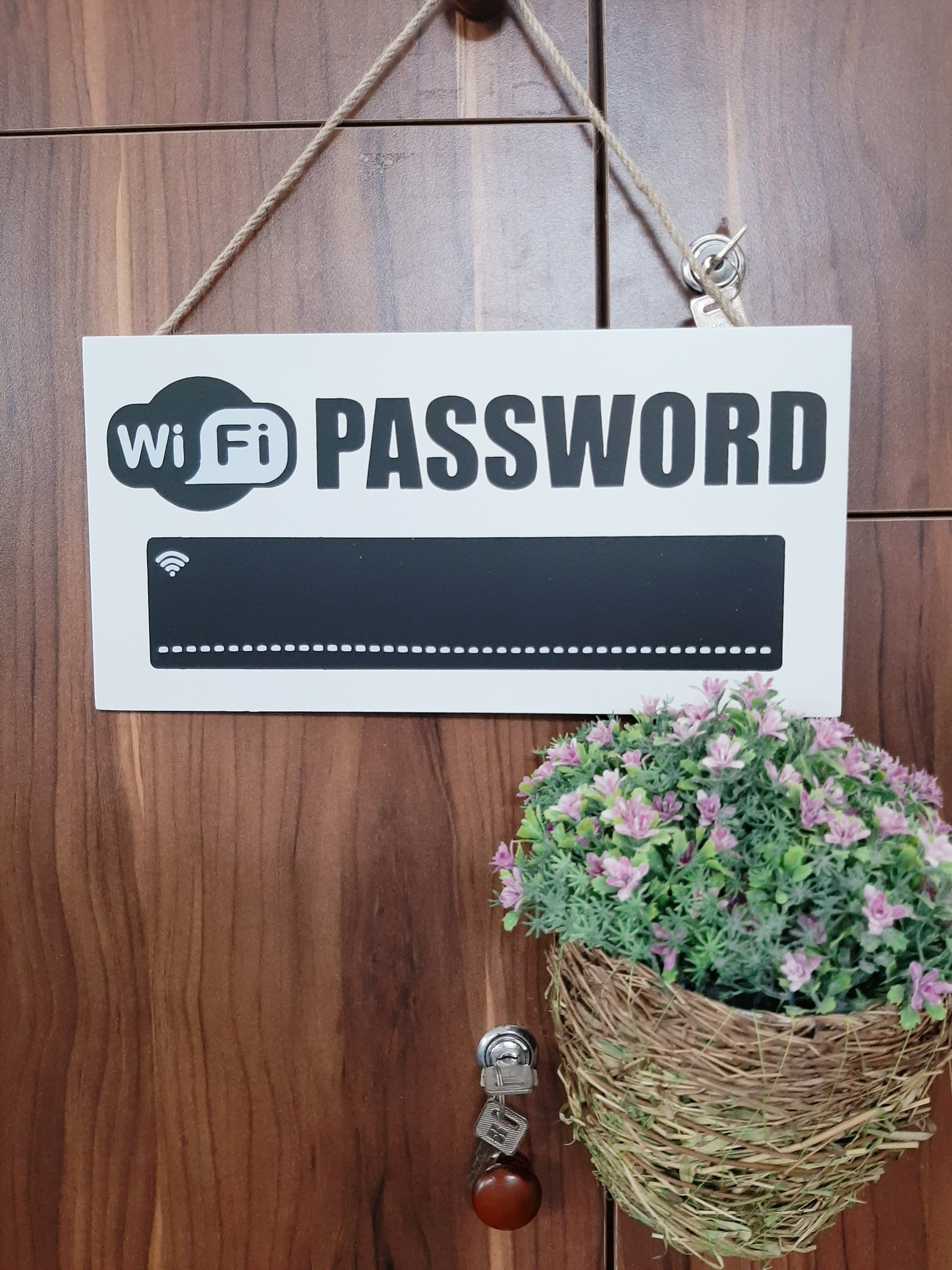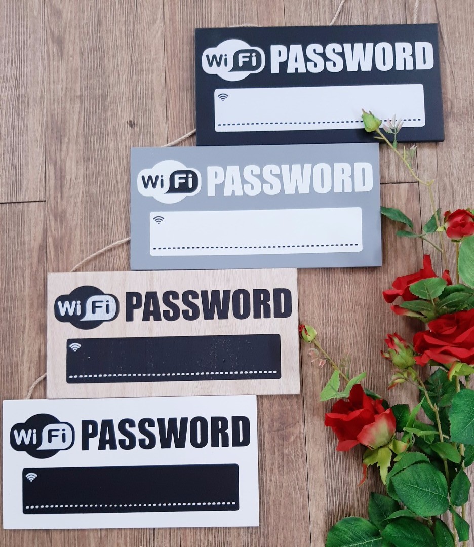 - Bảng treo giúp bạn tiện lợi thông báo password wifi, có thể sử dụng tại văn phòng, nhà riêng, quán cà phê